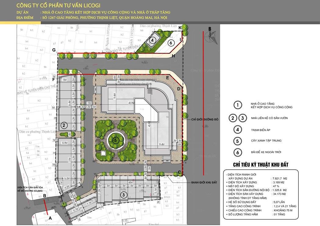 ĐỊA ĐIỂM XD: SỐ 1267 GIẢI PHÓNG - THỊNH LIỆT - HOÀNG MAI - HÀ NỘI CHỦ ĐẦU TƯ: CÔNG TY CP TU TẠO & PHÁT TRIỂN NHÀ QUY MÔ: DIỆN TÍCH SÀN XD: 34.173M2 (BAO GỒM CÁC TÒA NHÀ 4 TẦNG & 21 TẦNG) CV THỰC HIỆN: LẬP QUY HOẠCH TỔNG MẶT BẰNG VÀ PHƯƠNG ÁN KIẾN TRÚC DỰ ÁN ĐÃ ĐƯỢC SỞ QUY HOẠCH - KIẾN TRÚC TP. HÀ NỘI PHÊ DUYỆT TỔNG MẶT BẰNG VÀ CHẤP THUẬN PHƯƠNG ÁN KIẾN TRÚC NĂM 2017 NĂM THỰC HIỆN: 2015