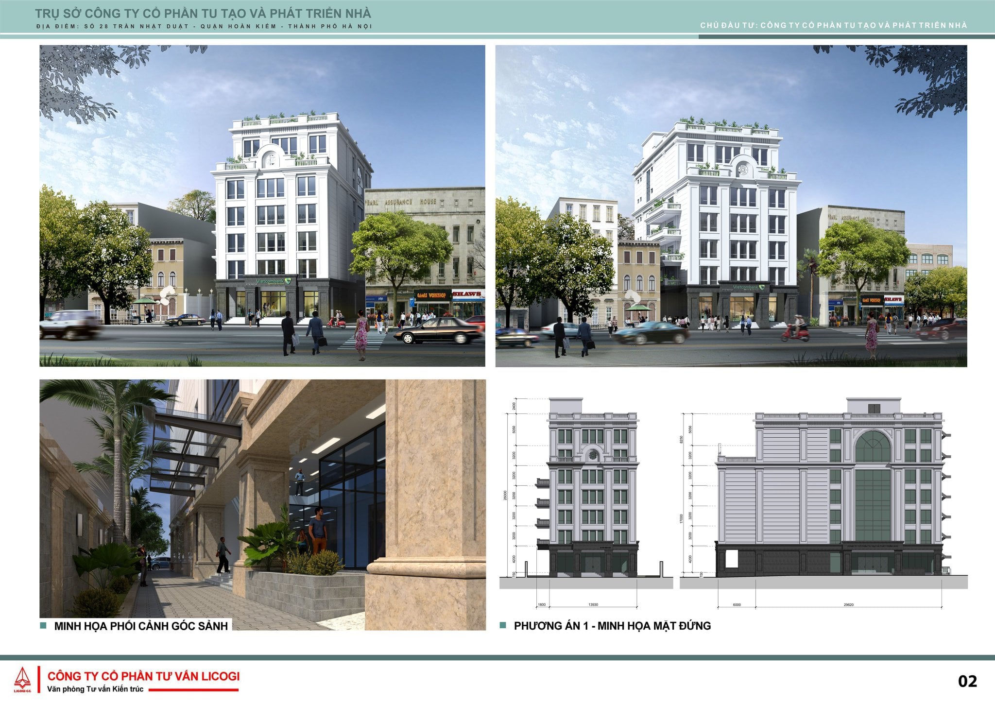 ĐỊA ĐIỂM XD: SỐ 28 TRẦN NHẬT DUẬT, HOÀN KIẾM, HÀ NỘI CHỦ NHIỆM DỰ ÁN: THS. KTS. TRẦN HOÀNG MINH CHỦ TRÌ THIẾT KẾ: KTS. VŨ VĂN QUANG THỰC HIỆN: VĂN PHÒNG TƯ VĂN KIẾN TRÚC - CÔNG TY CP TƯ VẤN LICOGI CV THỰC HIỆN: LẬP QUY HOẠCH TỔNG MẶT BẰNG, PHƯƠNG ÁN THIẾT KẾ, BÁO CÁO NGHIÊN CỨU KHẢ THI, LẬP HỒ SƠ THIẾT KẾ BẢN VẼ THI CÔNG VÀ DỰ TOÁN CÔNG TRÌNH CÔNG TRÌNH ĐÃ ĐƯỢC ĐƯA VÀO SỬ DỤNG NĂM THỰC HIỆN: 2018
